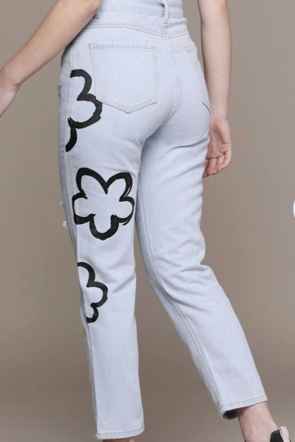 The Printed Flower Pacific Blue High Waist Jeans
